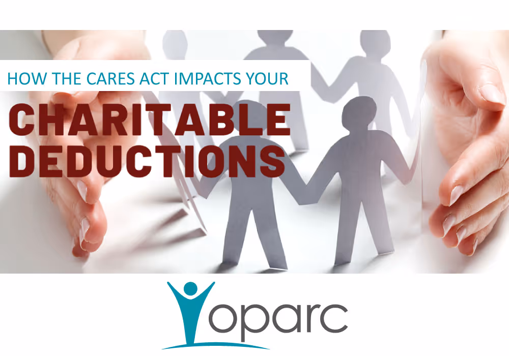 Oparc is not in the business of providing professional legal or financial advice. Donors should consult with their own tax, legal, or financial advisors to ascertain how these new CARES Act opportunities may complement their individual personal, philanthropic and tax planning objectives.For more information, this page from the Association of Fundraising Professionals (AFP) site can provide more details. https://afpglobal.org/news/cares-act-charitable-giving-incentives* Please note that the CARES ACT provisions highlighted above are only in effect for the 2020 tax year until otherwise noted.