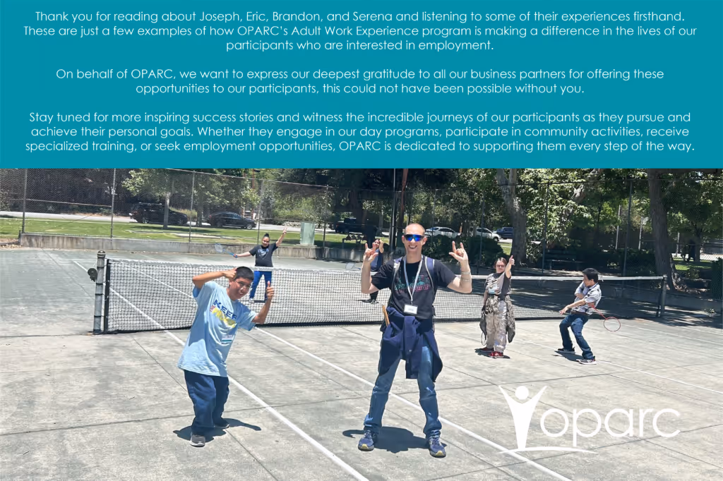 Serena’s cheerful outlook towards her work is evident, as she expresses enjoyment and gratitude for the opportunity to contribute. Serena’s story highlights the importance of inclusive workplaces and the impact of accommodations in enabling individuals with disabilities to thrive in their chosen fields. Through Oparc’s support and Serena’s dedication, she has found fulfillment and success in her role at the Chino Chamber of Commerce.