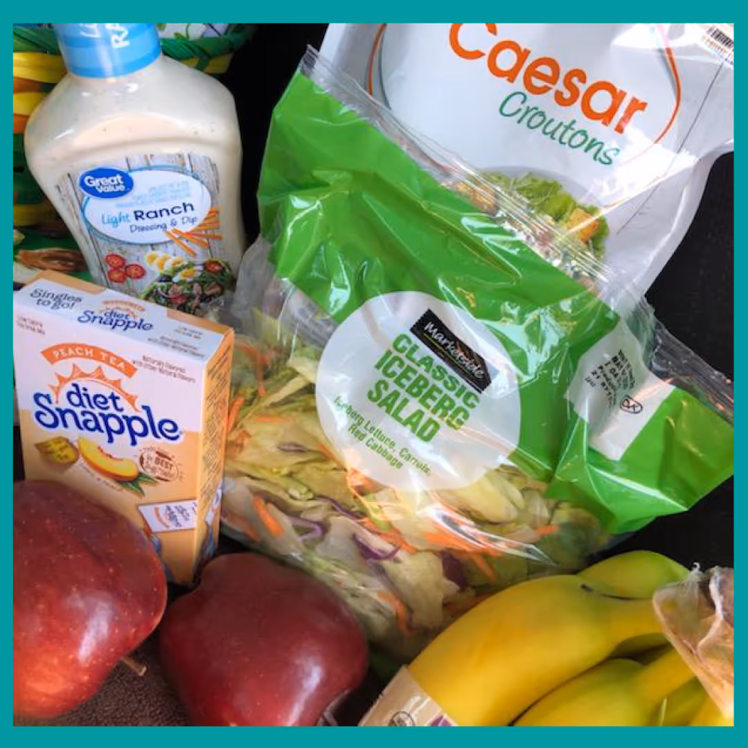 Direct Support Professional, Diane, made a social distance stop to individual Susan’s home. During a conversation with Susan over the phone, Susan mentioned she wanted to make healthy choices like Oparc encouraged through their Healthy Living Program. Diane took the initiative and picked up healthy items which included; fruit, healthy snacks, and ingredients to make a salad. Susan also enjoys arts and crafts, so a basket was filled with coloring books and art supplies.