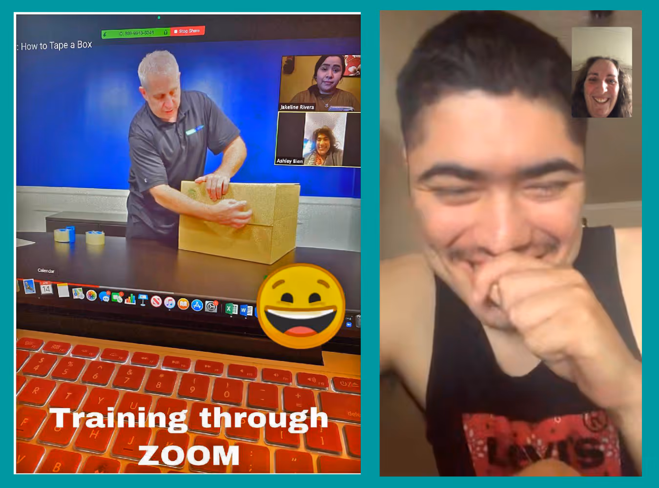 On the right…James is so happy on his daily calls with his Behavioral Support Professional, Casey!